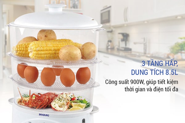 2.2. Nồi hấp 3 tầng Braburg B3L dung tích 8.5L